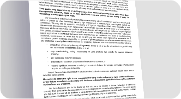 Table of Contents delay in market acceptance of our products, harm to our brand, weakening of our competitive position or claims by customers for losses sustained by them. A disruption, infiltration or failure of our information technology systems, third-party cloud hosting platforms or end-user data services as a result of software or hardware malfunctions, system implementations or upgrades, computer viruses, cyber-attacks, third-party security breaches, employee/ human error, theft or misuse, malfeasance, power disruptions, natural disasters or accidents could cause breaches of data security, failure of our service, loss of intellectual property and critical data and the release and misappropriation of sensitive competitive information and partner, customer and employee personal data. We have been and may in the future be subject to fraud attempts from outside parties through our electronic systems (such as “phishing” e-mail communications to our finance, technical or other personnel), which could put us at risk for harm from fraud, theft or other loss if our internal controls do not operate as intended. Any such future events could further harm our competitive position, result in a loss of customer confidence, cause us to incur significant costs to remedy any damages and ultimately materially adversely affect our business and financial condition. Third parties may assert that we are infringing upon their intellectual property rights, which could divert management’s attention, cause us to incur significant costs, and prevent us from selling or using the technology to which such rights relate. Our competitors and other third parties hold numerous patents related to technology used in our industry, and claims of patent or other intellectual property right infringement or violation have been litigated against our competitors. We may also be subject to such claims and litigation. Regardless of their merit, responding to such claims can be time consuming, divert management’s attention and resources, and may cause us to incur significant expenses. While we believe that our products and technology do not infringe upon any intellectual property rights of third parties, we cannot be certain that we would be successful in defending against any such claims. Furthermore, patent applications in the United States and most other countries are confidential for a period of time before being published, so we cannot be certain that we are not infringing third parties’ patent rights or that we were the first to conceive or protect inventions covered by our patents or patent applications. An adverse outcome with respect to any intellectual property claim could invalidate our proprietary rights and force us to do one or more of the following: • obtain from a third-party claiming infringement a license to sell or use the relevant technology, which may not be available on reasonable terms, or at all; • stop manufacturing, selling, incorporating or using products that embody the asserted intellectual property; • pay substantial monetary damages; • indemnify our customers under some of our customer contracts; or • expend significant resources to redesign the products that use the infringing technology, or to develop or acquire non-infringing technology. Any of these actions could result in a substantial reduction in our revenue and could result in losses over an extended period of time. Our failure to obtain the right to use necessary third-party intellectual property rights on reasonable terms, or our failure to maintain, and comply with the terms and conditions applicable to these rights, could harm our business and prospects. We have licensed, and in the future we may choose or be required to license, technology or intellectual property from third parties in connection with the development and marketing of our products. We cannot assure you that such licenses will be available to us on commercially reasonable terms, or at all, and our inability to obtain such licenses could require us to substitute technology of lower quality or of greater cost. Further, such licenses may be non-exclusive, which could result in our competitors gaining access to the same intellectual property. The licensing or acquisition of third-party intellectual property rights is a competitive area, and other established companies may pursue strategies to license or acquire third-party intellectual property rights that we may consider attractive or necessary. These established companies may have a competitive advantage over us due to their size, capital resources or greater development or commercialization capabilities. In addition, companies that perceive us to be a competitor may be unwilling to assign or license rights to us. We could encounter delays and incur significant costs, in product or service introductions while we attempt to develop alternative products or services, or redesign our products or services, to avoid infringing third-party patents or proprietary rights. Failure to obtain any such licenses or to develop a workaround could prevent us from Enphase Energy, Inc. | 2023 Form 10-K | 30