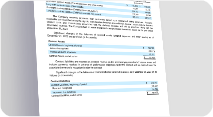 Table of Contents ENPHASE ENERGY, INC. NOTES TO CONSOLIDATED FINANCIAL STATEMENTS Contract Balances Receivables, and contract assets and contract liabilities from contracts with customers, are as follows: December 31, December 31, 2023 2022 (In thousands) Receivables $ 445,959 $ 440,896 Short-term contract assets (Prepaid expenses and other assets) 40,241 32,130 Long-term contract assets (Other assets) 124,190 100,991 Short-term contract liabilities (Deferred revenues, current) 118,300 90,747 Long-term contract liabilities (Deferred revenues, non-current) 369,172 281,613 The Company receives payments from customers based upon contractual billing schedules. Accounts receivable are recorded when the right to consideration becomes unconditional. Contract assets include deferred product costs and commissions associated with the deferred revenue and will be amortized along with the associated revenue. The Company had no asset impairment charges related to contract assets for the year ended December 31, 2023. Significant changes in the balances of contract assets (prepaid expenses and other assets) as of December 31, 2023 are as follows (in thousands): Contract Assets Contract Assets, beginning of period $ 133,121 Amount recognized (38,011) Increased due to shipments 69,321 Contract Assets, end of period $ 164,431 Contract liabilities are recorded as deferred revenue on the accompanying consolidated balance sheets and include payments received in advance of performance obligations under the contract and are realized when the associated revenue is recognized under the contract. Significant changes in the balances of contract liabilities (deferred revenues) as of December 31, 2023 are as follows (in thousands): Contract Liabilities Contract Liabilities, beginning of period $ 372,360 Revenue recognized (109,687) Increased due to billings 224,799 Contract Liabilities, end of period $ 487,472 Enphase Energy, Inc. | 2023 Form 10-K | 84