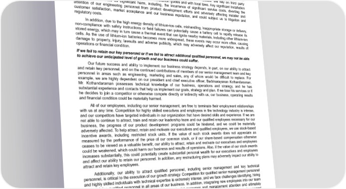 Table of Contents perform as expected could cause us to incur significant service and re-engineering costs, divert the attention of our engineering personnel from product development efforts and significantly and adversely affect installer and customer satisfaction, market acceptance and our business reputation. Furthermore, if we are unable to correct manufacturing defects or other failures of products in a manner satisfactory to our customers, our results of operations, customer satisfaction and our business reputation could be adversely affected. Since some of our products are electricity-producing devices, it is possible that our systems could result in injury, whether by product malfunctions, defects, improper installation, or other causes. We rely on third party installers to install our products according to our installation guides and with local laws. Any significant installation problems could cause us significant harm, including, the incurrence of significant service costs, diverting the attention of our engineering personnel from product development efforts and adversely affecting installer and customer satisfaction, market acceptance and our business reputation, and could subject us to litigation and regulatory costs. In addition, due to the high energy density of lithium-ion cells, mishandling, inappropriate storage or delivery, non-compliance with safety instructions or field failures can potentially cause a battery cell to rapidly release its stored energy, which may in turn cause a thermal event that can ignite nearby materials, including other lithium-ion cells. As the use of lithium-ion batteries becomes more widespread, these events may occur more often, causing damage to property, injury, lawsuits and adverse publicity, which may adversely affect our reputation, results of operations or financial condition. If we fail to retain our key personnel or if we fail to attract additional qualified personnel, we may not be able to achieve our anticipated level of growth and our business could suffer. Our future success and ability to implement our business strategy depends, in part, on our ability to attract and retain key personnel, and on the continued contributions of members of our senior management team and key personnel in areas such as engineering, marketing and sales, any of whom would be difficult to replace. For example, we are highly dependent on our president and chief executive officer, Badrinarayanan Kothandaraman. Mr. Kothandaraman possesses technical knowledge of our business, operations and strategy, and he has substantial experience and contacts that help us implement our goals, strategy and plan. If we lose his services or if he decides to join a competitor or otherwise compete directly or indirectly with us, our business, operating results and financial condition could be materially harmed. All of our employees, including our senior management, are free to terminate their employment relationships with us at any time. Competition for highly skilled executives and employees in the technology industry is intense, and our competitors have targeted individuals in our organization that have desired skills and experience. If we are not able to continue to attract, train and retain our leadership team and our qualified employees necessary for our business, the progress of our product development programs could be hindered, and we could be materially adversely affected. To help attract, retain and motivate our executives and qualified employees, we use stock-based incentive awards, including restricted stock units. If the value of such stock awards does not appreciate as measured by the performance of the price of our common stock, or if our share-based compensation otherwise ceases to be viewed as a valuable benefit, our ability to attract, retain and motivate our executives and employees could be weakened, which could harm our business and results of operations. Also, if the value of our stock awards increases substantially, this could potentially create substantial personal wealth for our executives and employees and affect our ability to retain our personnel. In addition, any restructuring plans may adversely impact our ability to attract and retain key employees. Additionally, our ability to attract qualified personnel, including senior management and key technical personnel, is critical to the execution of our growth strategy. Competition for qualified senior management personnel and highly skilled individuals with technical expertise is extremely intense, and we face challenges identifying, hiring and retaining qualified personnel in all areas of our business. In addition, integrating new employees into our team could prove disruptive to our operations, require substantial resources and management attention and ultimately prove unsuccessful. Our failure to attract and retain qualified senior management and other key technical personnel could limit or delay our strategic efforts, which could have a material adverse effect on our business, financial condition, results of operations and prospects. Restructuring activities could disrupt our business and adversely affect our results of operations. We have taken steps, including reducing our global workforce, streamlining our operations and internal reorganizations, to increase operational efficiencies and execution, reduce operating costs, and better align our workforce and cost structure with current market condition. We may take similar steps in the future as we seek to Enphase Energy, Inc. | 2023 Form 10-K | 25
