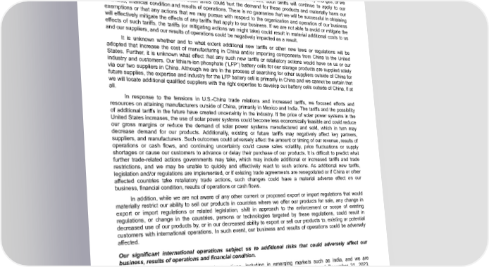 Table of Contents However, in March 2020, the Office of the U.S. Trade Representative announced certain exclusion requests related to tariffs on Chinese imported microinverter products that fit the dimensions and weight limits within a Section 301 Tariff exclusion (the “Tariff Exclusion”). The Tariff Exclusion applied to covered products exported from China to the United States from September 24, 2018 until August 7, 2020. Accordingly, we sought and received refunds totaling approximately $38.9 million plus approximately $0.6 million accrued interest on tariffs previously paid from September 24, 2018 to March 31, 2020 for certain microinverters that qualify for the Tariff Exclusion. This exemption expired in August 2020, and our request to extend it has been denied. Unless U.S. policy changes, or we are eligible for other exemptions or take other actions to avoid them, such tariffs will continue to apply to our microinverters and other products. Such tariffs could hurt the demand for these products and materially harm our business, financial condition and results of operations. There is no guarantee that we will be successful in obtaining exemptions or that any actions that we may pursue with respect to the organization and operation of our business will effectively mitigate the effects of any tariffs that apply to our business. If we are not able to avoid or mitigate the effects of such tariffs, the tariffs (or mitigating actions we might take) could result in material additional costs to us and our suppliers, and our results of operations could be negatively impacted as a result. It is unknown whether and to what extent additional new tariffs or other new laws or regulations will be adopted that increase the cost of manufacturing in China and/or importing components from China to the United States. Further, it is unknown what effect that any such new tariffs or retaliatory actions would have on us or our industry and customers. Our lithium-ion phosphate (“LFP”) battery cells for our storage products are supplied solely via our two suppliers in China. Although we are in the process of searching for other suppliers outside of China for future supplies, the expertise and industry for the LFP battery cell is primarily in China and we cannot be certain that we will locate additional qualified suppliers with the right expertise to develop our battery cells outside of China, if at all. In response to the tensions in U.S.-China trade relations and increased tariffs, we focused efforts and resources on attaining manufacturers outside of China, primarily in Mexico and India. The tariffs and the possibility of additional tariffs in the future have created uncertainty in the industry. If the price of solar power systems in the United States increases, the use of solar power systems could become less economically feasible and could reduce our gross margins or reduce the demand of solar power systems manufactured and sold, which in turn may decrease demand for our products. Additionally, existing or future tariffs may negatively affect key partners, suppliers, and manufacturers. Such outcomes could adversely affect the amount or timing of our revenue, results of operations or cash flows, and continuing uncertainty could cause sales volatility, price fluctuations or supply shortages or cause our customers to advance or delay their purchase of our products. It is difficult to predict what further trade-related actions governments may take, which may include additional or increased tariffs and trade restrictions, and we may be unable to quickly and effectively react to such actions. As additional new tariffs, legislation and/or regulations are implemented, or if existing trade agreements are renegotiated or if China or other affected countries take retaliatory trade actions, such changes could have a material adverse effect on our business, financial condition, results of operations or cash flows. In addition, while we are not aware of any other current or proposed export or import regulations that would materially restrict our ability to sell our products in countries where we offer our products for sale, any change in export or import regulations or related legislation, shift in approach to the enforcement or scope of existing regulations, or change in the countries, persons or technologies targeted by these regulations, could result in decreased use of our products by, or in our decreased ability to export or sell our products to, existing or potential customers with international operations. In such event, our business and results of operations could be adversely affected. Our significant international operations subject us to additional risks that could adversely affect our business, results of operations and financial condition. We have significant international operations, including in emerging markets such as India, and we are continuing to expand our international operations as part of our growth strategy. As of December 31, 2023, approximately 54% of our total employees were located in India, where we primarily conduct our research and development activities, procurement, customer support services, and other general and administrative support functions. Enphase Energy, Inc. | 2023 Form 10-K | 32