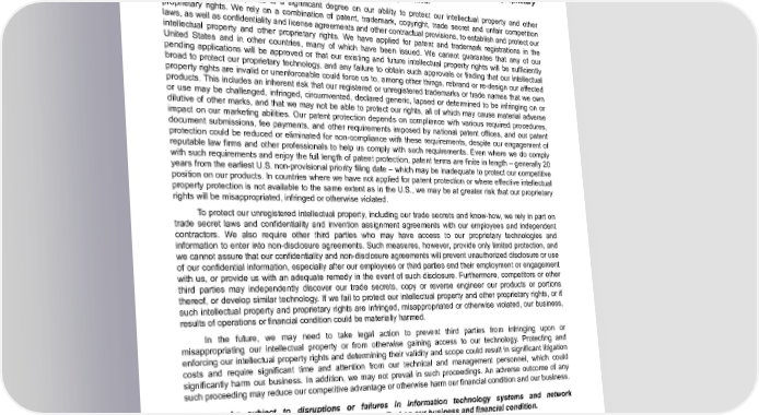 Table of Contents Additionally, certain privacy and other laws impose obligations to provide notification of security breaches of computer databases that contain personal information to affected individuals, state officers and others. Any actual or perceived failure by us to comply with these laws, regulations or other obligations may lead to significant fines, penalties, regulatory investigations, lawsuits, significant costs for remediation, damage to our reputation, or other liabilities. If we fail to protect, or incur significant costs in enforcing, our intellectual property and other proprietary rights, our business and results of operations could be materially harmed. Our success depends to a significant degree on our ability to protect our intellectual property and other proprietary rights. We rely on a combination of patent, trademark, copyright, trade secret and unfair competition laws, as well as confidentiality and license agreements and other contractual provisions, to establish and protect our intellectual property and other proprietary rights. We have applied for patent and trademark registrations in the United States and in other countries, many of which have been issued. We cannot guarantee that any of our pending applications will be approved or that our existing and future intellectual property rights will be sufficiently broad to protect our proprietary technology, and any failure to obtain such approvals or finding that our intellectual property rights are invalid or unenforceable could force us to, among other things, rebrand or re-design our affected products. This includes an inherent risk that our registered or unregistered trademarks or trade names that we own or use may be challenged, infringed, circumvented, declared generic, lapsed or determined to be infringing on or dilutive of other marks, and that we may not be able to protect our rights, all of which may cause material adverse impact on our marketing abilities. Our patent protection depends on compliance with various required procedures, document submissions, fee payments, and other requirements imposed by national patent offices, and our patent protection could be reduced or eliminated for non-compliance with these requirements, despite our engagement of reputable law firms and other professionals to help us comply with such requirements. Even where we do comply with such requirements and enjoy the full length of patent protection, patent terms are finite in length – generally 20 years from the earliest U.S. non-provisional priority filing date – which may be inadequate to protect our competitive position on our products. In countries where we have not applied for patent protection or where effective intellectual property protection is not available to the same extent as in the U.S., we may be at greater risk that our proprietary rights will be misappropriated, infringed or otherwise violated. To protect our unregistered intellectual property, including our trade secrets and know-how, we rely in part on trade secret laws and confidentiality and invention assignment agreements with our employees and independent contractors. We also require other third parties who may have access to our proprietary technologies and information to enter into non-disclosure agreements. Such measures, however, provide only limited protection, and we cannot assure that our confidentiality and non-disclosure agreements will prevent unauthorized disclosure or use of our confidential information, especially after our employees or third parties end their employment or engagement with us, or provide us with an adequate remedy in the event of such disclosure. Furthermore, competitors or other third parties may independently discover our trade secrets, copy or reverse engineer our products or portions thereof, or develop similar technology. If we fail to protect our intellectual property and other proprietary rights, or if such intellectual property and proprietary rights are infringed, misappropriated or otherwise violated, our business, results of operations or financial condition could be materially harmed. In the future, we may need to take legal action to prevent third parties from infringing upon or misappropriating our intellectual property or from otherwise gaining access to our technology. Protecting and enforcing our intellectual property rights and determining their validity and scope could result in significant litigation costs and require significant time and attention from our technical and management personnel, which could significantly harm our business. In addition, we may not prevail in such proceedings. An adverse outcome of any such proceeding may reduce our competitive advantage or otherwise harm our financial condition and our business. We may be subject to disruptions or failures in information technology systems and network infrastructures that could have a material adverse effect on our business and financial condition. We rely on the efficient and uninterrupted operation of complex information technology systems and network infrastructures to operate our business. In addition, our web-based monitoring service, which our installers and end- user customers use to track and monitor the performance of their energy systems, is dependent on cloud-based hosting services, along with the availability of internet or cellular data services at end-user premises. Despite testing by us, real or perceived errors, failures or bugs in our customer solutions, software or technology or the technology or software we license from third parties, including open source software, may not be found until our customers use our products. Real or perceived errors, failures or bugs in our products could result in negative publicity, loss of or Enphase Energy, Inc. | 2023 Form 10-K | 29