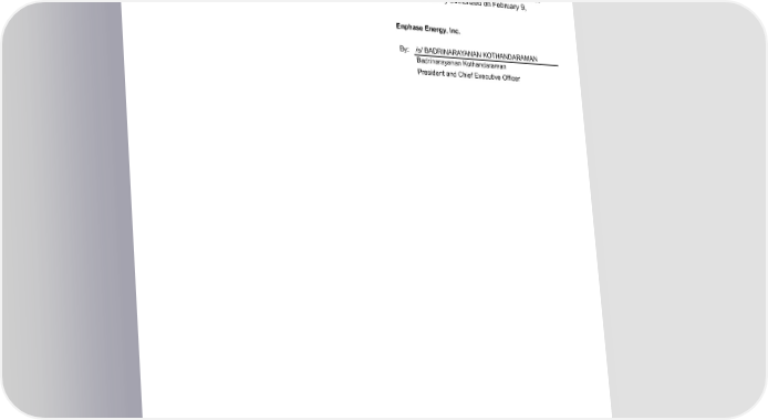 Table of Contents SIGNATURES Pursuant to the requirements of Section 13 or 15(d) of the Securities Exchange Act of 1934, the registrant has duly caused this report to be signed on its behalf by the undersigned, thereunto duly authorized on February 9, 2024. Enphase Energy, Inc. By: /s/ BADRINARAYANAN KOTHANDARAMAN Badrinarayanan Kothandaraman President and Chief Executive Officer Enphase Energy, Inc. | 2023 Form 10-K | 131