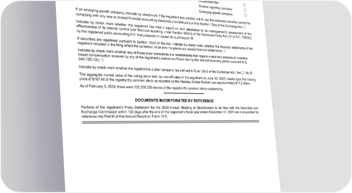 Indicate by check mark whether the registrant has submitted electronically every Interactive Data File required to be submitted pursuant to Rule 405 of Regulation S-T (§232.405 of this chapter) during the preceding 12 months (or for such shorter period that the registrant was required to submit such files). Yes x No ☐ Indicate by check mark whether the registrant is a large accelerated filer, an accelerated filer, a non-accelerated filer, a smaller reporting company, or an emerging growth company. See definitions of “large accelerated filer,” “accelerated filer,” “smaller reporting company,” and “emerging growth company” in Rule 12b-2 of the Exchange Act. ☒ ☐ Large accelerated filer Accelerated filer ☐ ☐ Non-accelerated filer Smaller reporting company ☐ Emerging growth company If an emerging growth company, indicate by checkmark if the registrant has elected not to use the extended transition period for complying with any new or revised financial accounting standards provided pursuant to Section 13(a) of the Exchange Act. ☐ Indicate by check mark whether the registrant has filed a report on and attestation to its management’s assessment of the effectiveness of its internal control over financial reporting under Section 404(b) of the Sarbanes-Oxley Act (15 U.S.C. 7262(b)) by the registered public accounting firm that prepared or issued its audit report. ☒ If securities are registered pursuant to Section 12(b) of the Act, indicate by check mark whether the financial statements of the registrant included in the filing reflect the correction of an error to previously issued financial statements. ☐ Indicate by check mark whether any of those error corrections are restatements that require a recovery analysis of incentive- based compensation received by any of the registrant’s executive officers during the relevant recovery period pursuant to § 240.10D-1(b). ☐ Indicate by check mark whether the registrant is a shell company (as defined in Rule 12b-2 of the Exchange Act). Yes ☐ No ☒ The aggregate market value of the voting stock held by non-affiliates of the registrant on June 30, 2023, based upon the closing price of $167.48 of the registrant’s common stock as reported on the Nasdaq Global Market, was approximately $17.2 billion. As of February 5, 2024, there were 135,759,339 shares of the registrant’s common stock outstanding. DOCUMENTS INCORPORATED BY REFERENCE Portions of the registrant’s Proxy Statement for the 2024 Annual Meeting of Stockholders to be filed with the Securities and Exchange Commission within 120 days after the end of the registrant’s fiscal year ended December 31, 2023 are incorporated by reference into Part III of this Annual Report on Form 10-K.