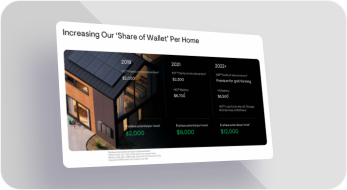 Increasing Our 'Share of Wallet' Per Home 1 En phase internal data and approximate estimates 2 Refers to 107, 107+, I07X, I07A with 20 micros per home 3 Refers to 108, 108+, I08M, I08A, I08H with 20 micros per home 4 Assumes 10 kWh battery and system controller